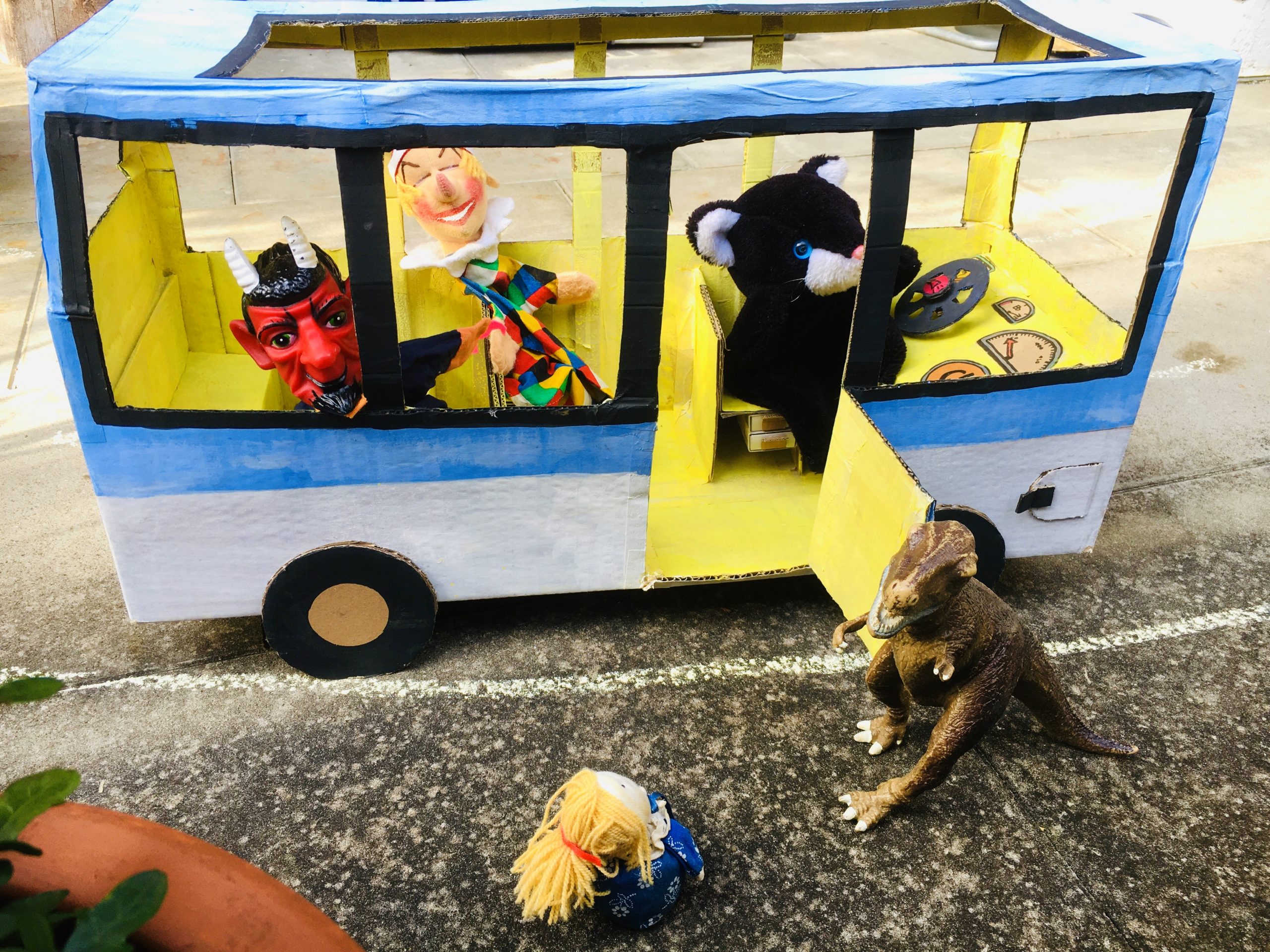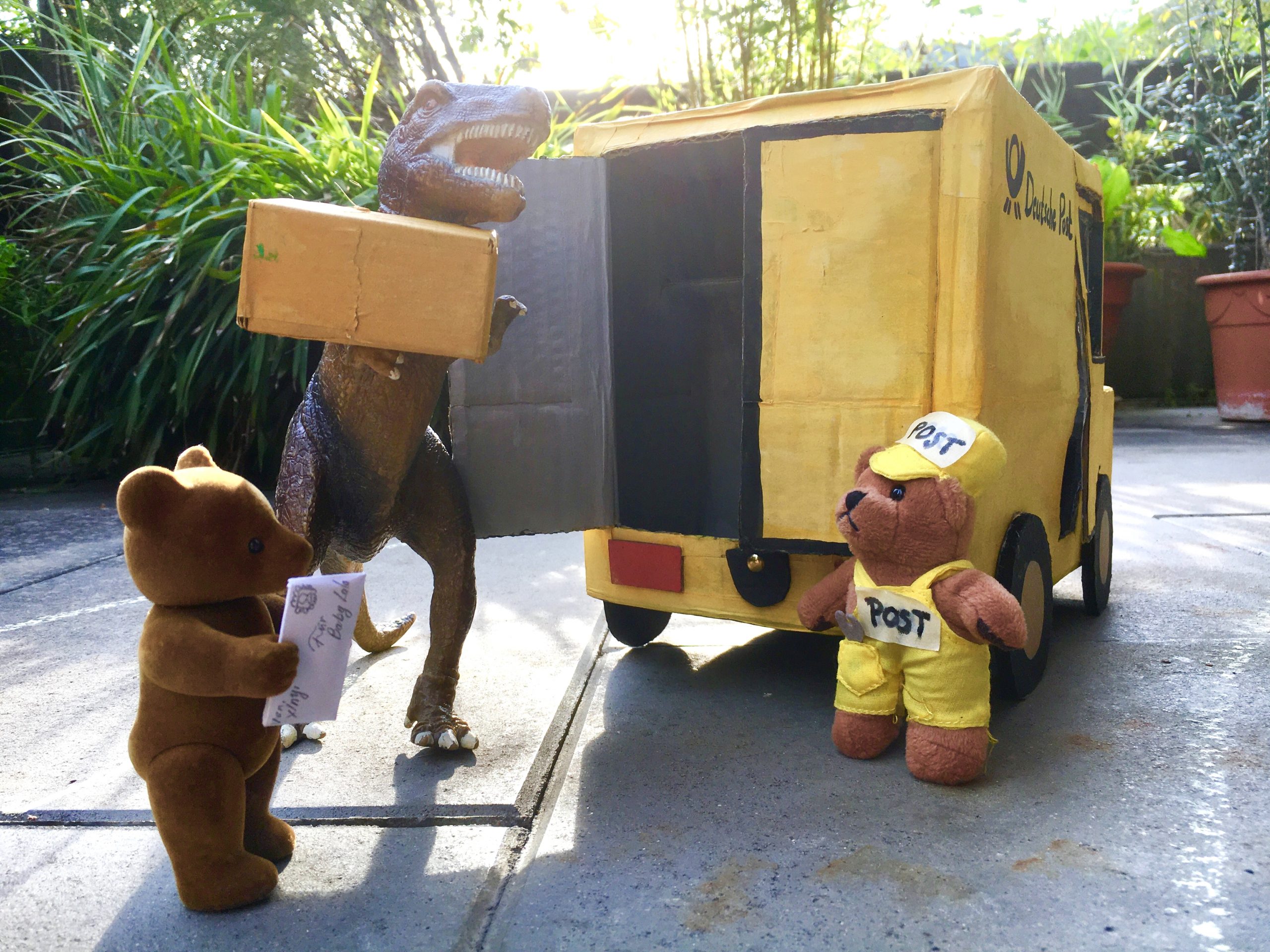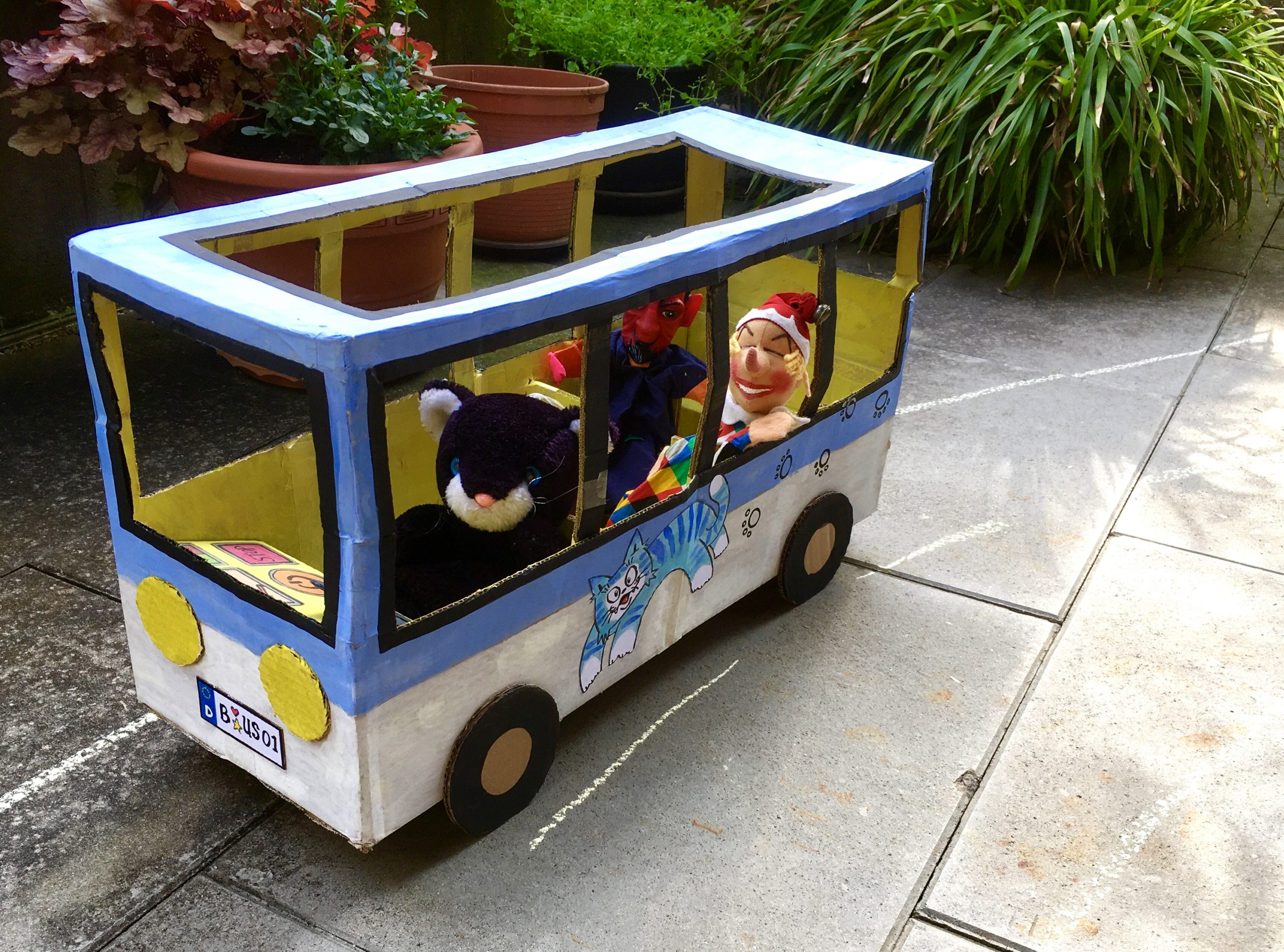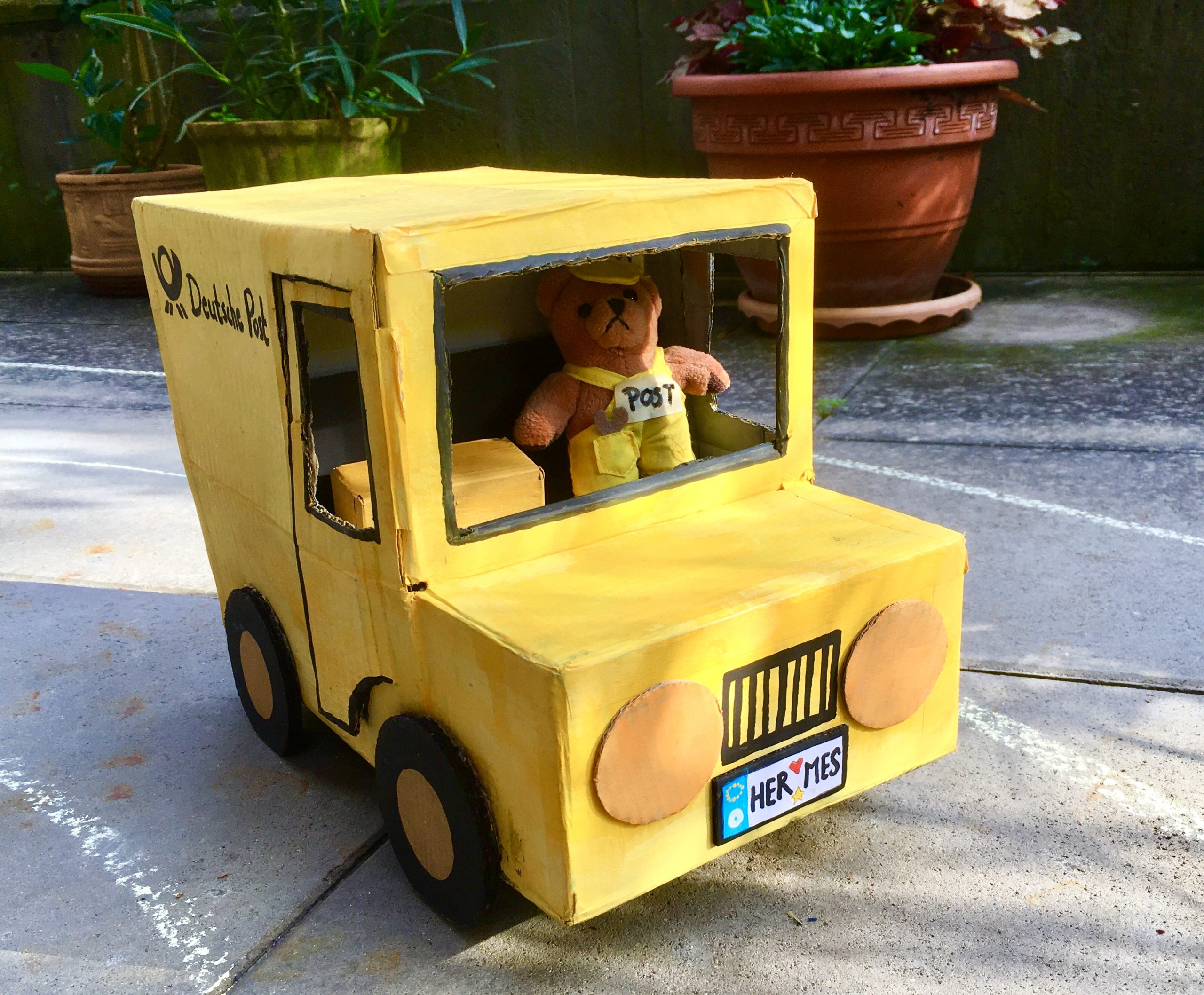 Im Folgenden präsentiere ich Euch den Fuhrpark, den mein Neffe, meine Schwester und ich quasi aus „Müll“ selbstgebastelt haben. Alles was wir dafür benötigt haben: alte Pappkisten, UHU-Kleber, Paketklebeband, Wasserfarben, Bleistift, Schere, Teppichmesser und Lineal. Damit lassen sich ressourcenschonende und kostengünstige Spielsachen leicht selber herstellen und die Unterhaltung sowohl von Klein als auch Groß ist garantiert. Einzige Voraussetzung: der eigenen Kreativität muss freien Lauf gelassen werden.